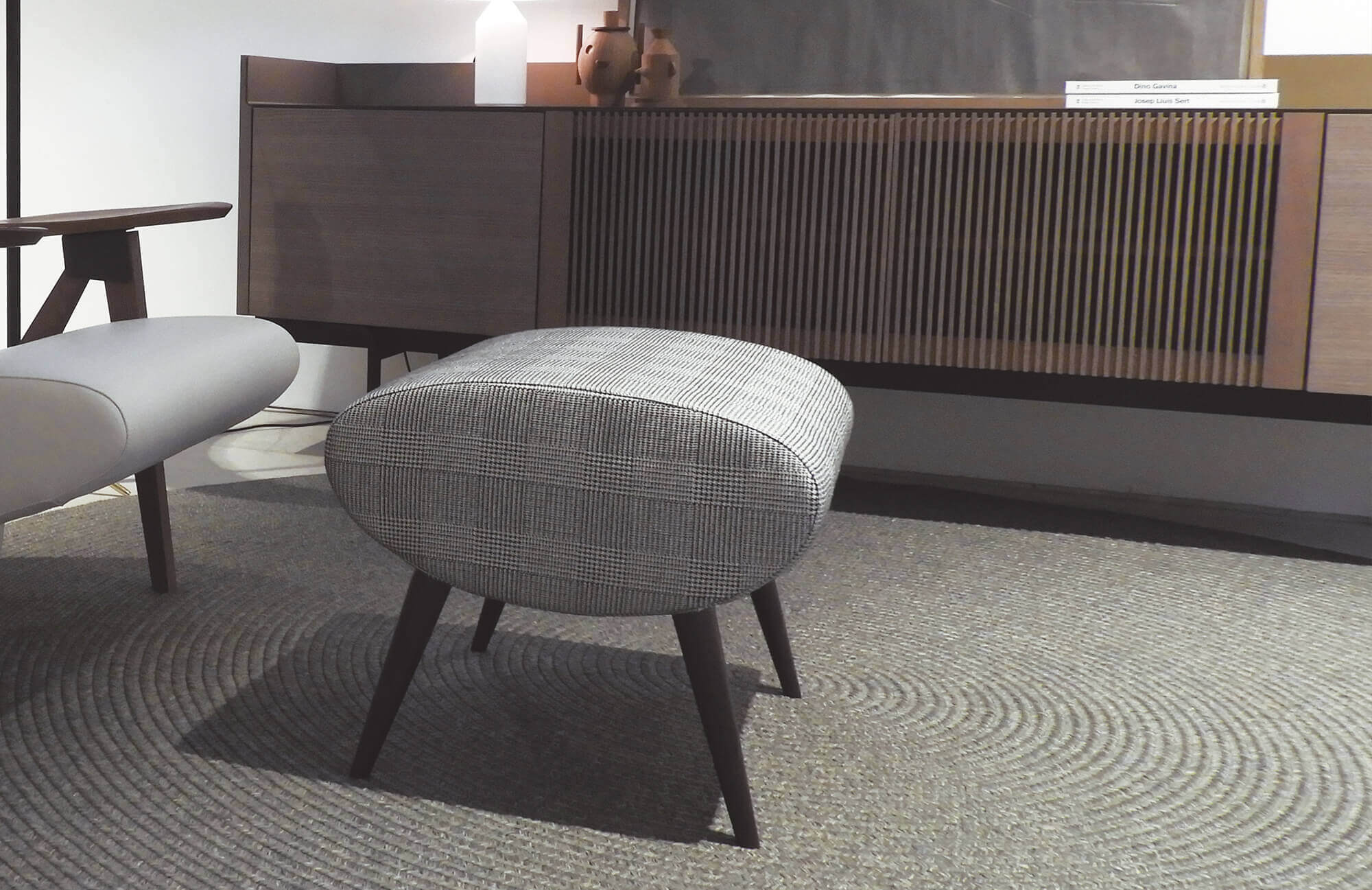Tapizado no desenfundable en tejido o piel.